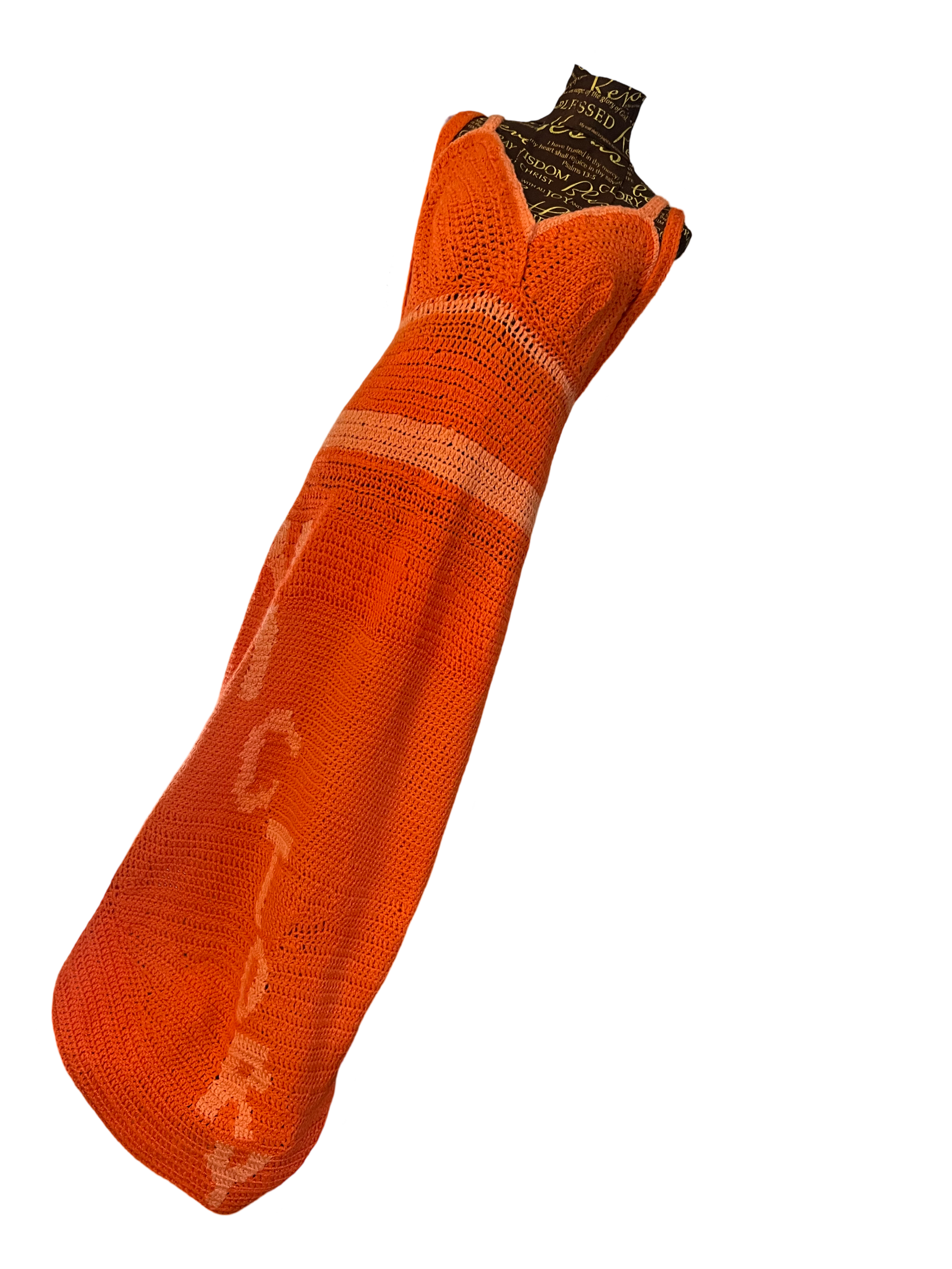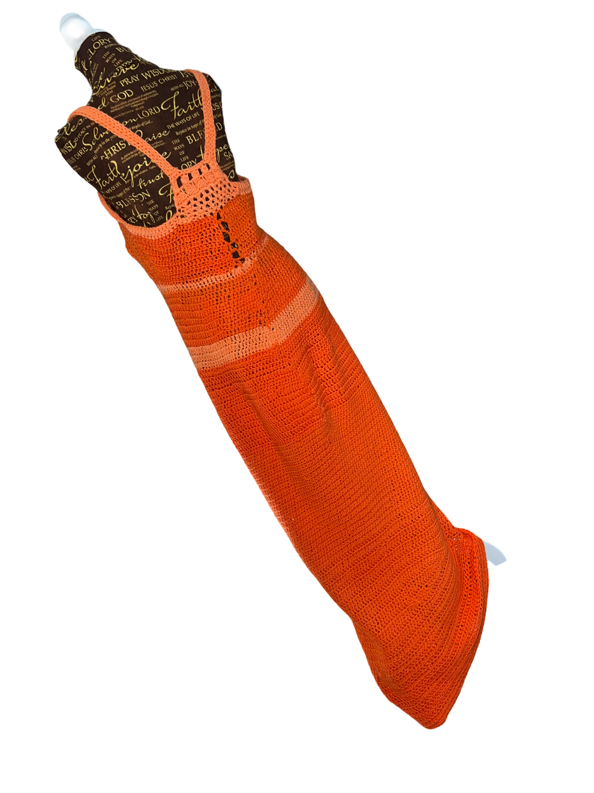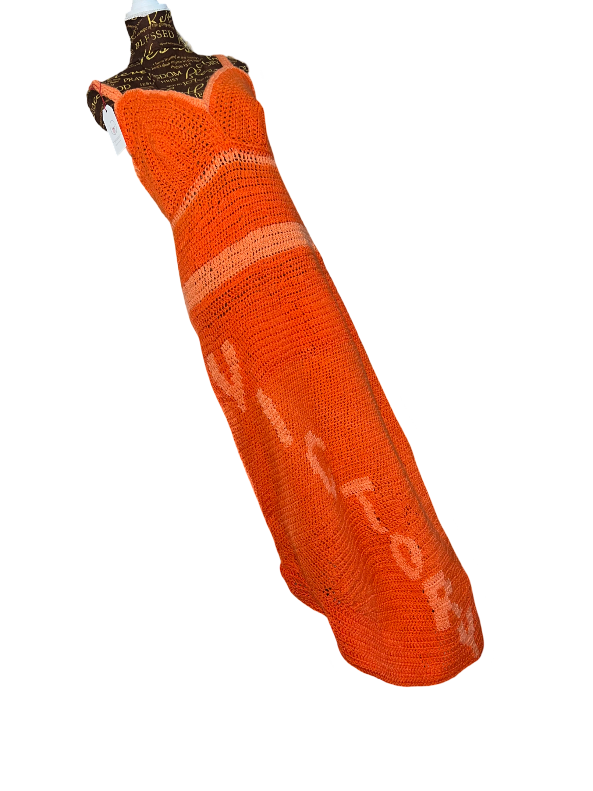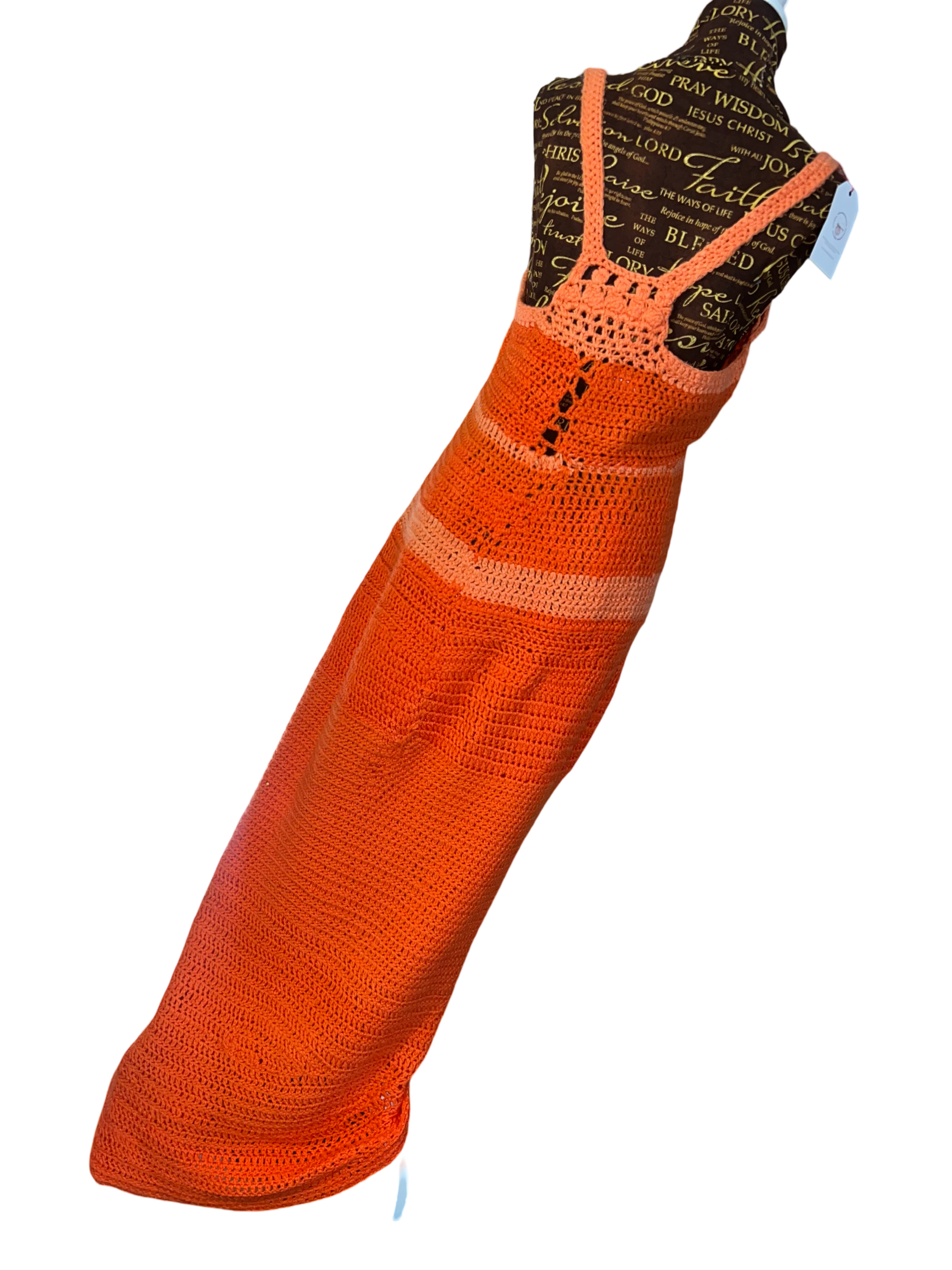 This handcrafted crochet dress showcases a special word that speaks from your heart! Dress has shoulder straps and webbed back for extra detail as you walk away. The ruching along inside shapes the dress into an asymmetrical sexy profile. Pull over to get into an easy to pack stunner.